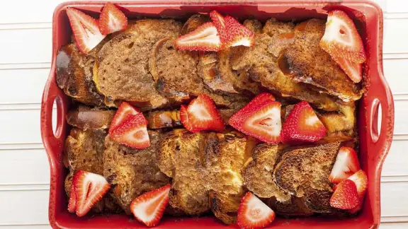 Get ready to fall in love with French toast all over again. This overnight French toast recipe, brimming with strawberries and bananas, comes out of the fridge ready to bake.