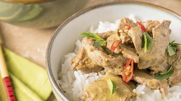 Stir-fried with Red Curry Paste, simmered in Coconut Milk and augmented with Premium Fish Sauce, this red curry always satisfies. It’s best eaten with jasmine rice.