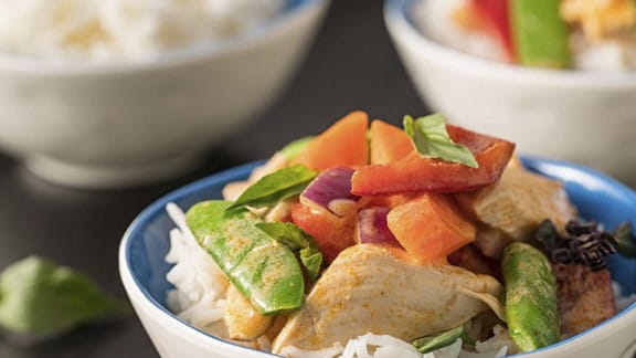 This dish pays tribute to Thai recipes and is ready to serve in less than 30 minutes. Yellow Curry Paste – offering a stimulating blend of lemongrass, Thai ginger and garlic – powers our Thai yellow curry chicken recipe.