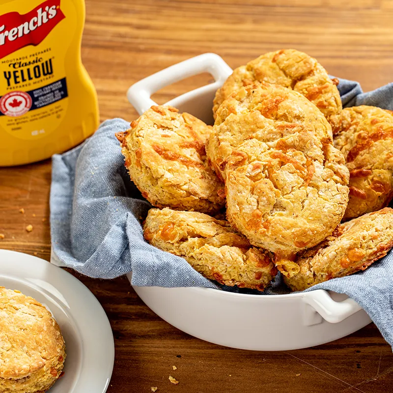 French’s® Classic Yellow Mustard in homemade biscuits? Ya’ heard that right! Tangy mustard balances out the sharp cheddar and buttermilk flavours to create a memorable dinner side in less than 30 minutes.
