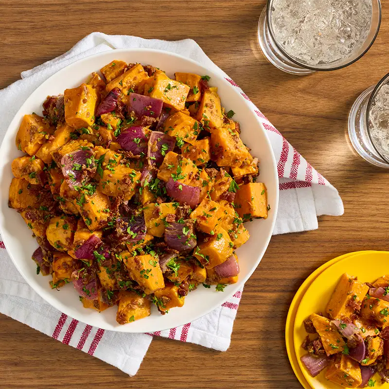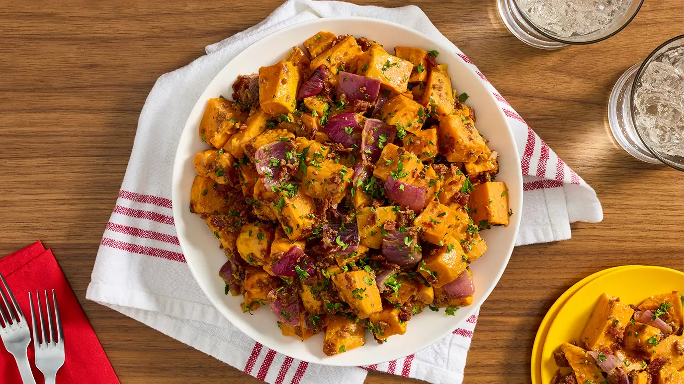 What do you get when you combine roasted sweet potatoes, crispy bacon, and the craveable, sweet heat of French’s® Hot Honey Mustard? This creative but oh-so-simple twist on a classic side dish, perfect for paring with everything from grilled chicken to burgers to sandwiches and more.