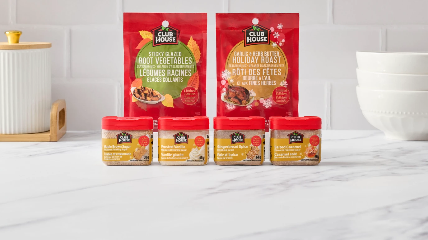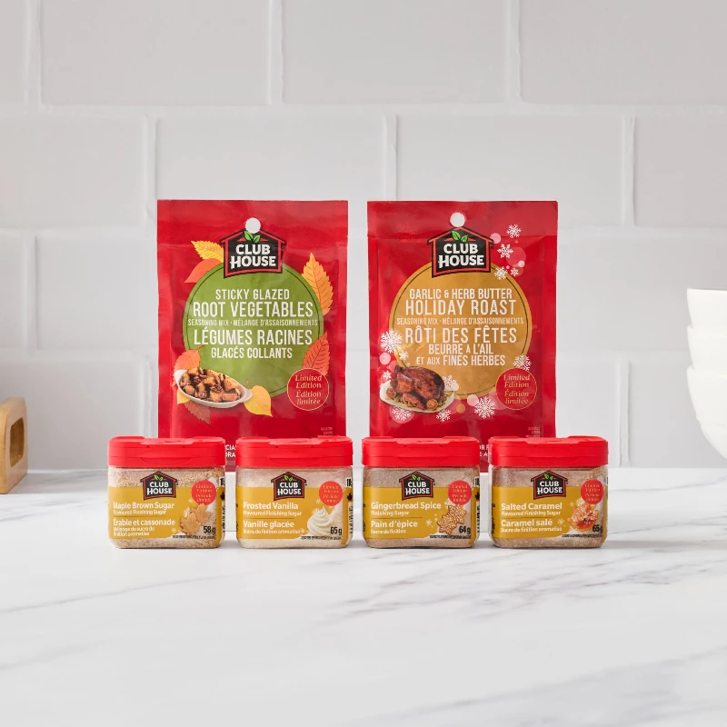'Tis the season for quality flavour from Club House. Try our new Frosted Vanilla and Maple Brown Sugar Finishing Sugars to sweeten holiday treats, and make holiday meal prep easy with our new festive Seasoning Mixes. Available for a limited time only!