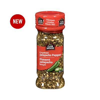 With Club House Crushed Jalapeño Pepper on your spice rack, you will always have jalapeño flavour on hand. Add the bold, distinctive flavour and moderate heat of this convenient ingredient... With Club House Crushed Jalapeño Pepper on your spice rack, you will always have jalapeño flavour on hand. Add the bold, distinctive flavour and moderate heat of this convenient ingredient to recipes for chili, tacos, nachos, guacamole, pizza, and more. No prep needed with our Crushed Jalapeño Pepper. We’ve cored, diced, and dried fresh jalapeños so they’re ready to use. Add them wherever you want a kick of medium heat in your favourite recipes and foods. Great in salsa, enchilada sauce, stews, soups, and marinades. Versatile Crushed Jalapeño Pepper delivers a lively pop of heat to dips, cream cheese, scrambled eggs, cornbread, spicy margaritas, burgers, ceviche, and elotes. Proudly Canadian since 1883, Club house is dedicated to boosting the flavour of everyday meals with spices, seasonings, recipe mixes, and extracts your whole family will love. More Less