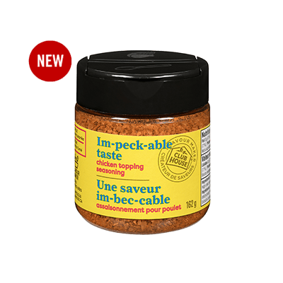 For taste that’s im-peck-able, reach for Club House Flavour Maker Chicken Topping Seasoning. A vibrant blend of sea salt, garlic, and smoked paprika, it’s an easy upgrade for chicken, pasta,... For taste that’s im-peck-able, reach for Club House Flavour Maker Chicken Topping Seasoning. A vibrant blend of sea salt, garlic, and smoked paprika, it’s an easy upgrade for chicken, pasta, or steak while cooking or tableside. Never say “chicken again?” again with this convenient Chicken Topping Seasoning. Simply flip the cap to pinch, pour, or shake, and enjoy. It’s an easy way to season grilled, roasted, or air-fried meats or veggies. Prefer to flavour at the table? Pinch or shake over your meal for an extra pop of memorable flavour. With this all-in-one solution to inspired, everyday cooking, you’ll be the best chicken maker around. More Less