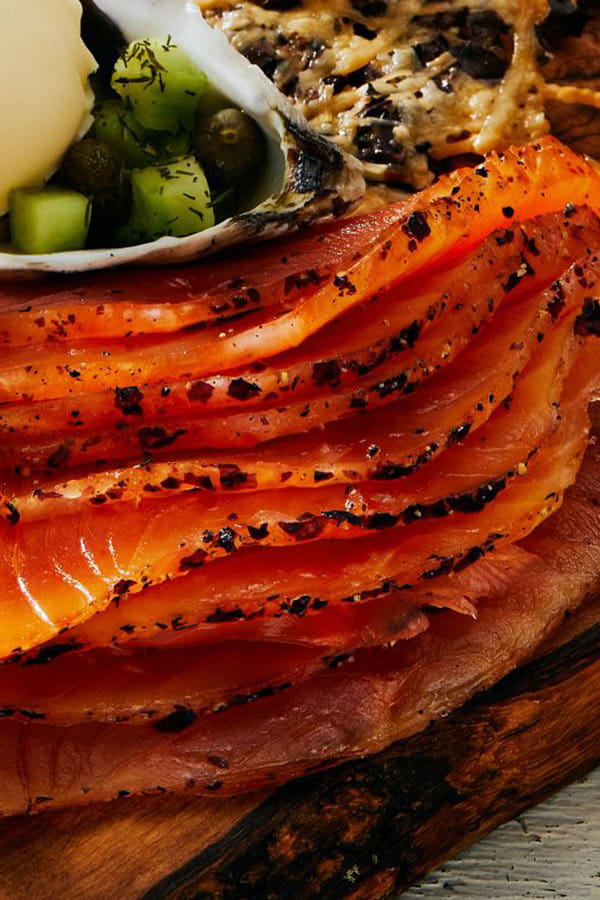 Celebrate the bounty of the deep blue sea with a dulse seaweed cured salmon, ideal for seafood charcuterie boards.
