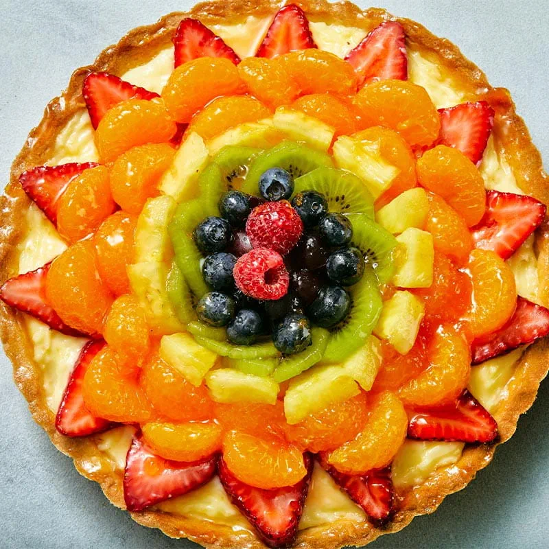 With a creamy vanilla tart filling and gorgeous assorted sliced fruit topping, this rainbow fruit tart is the perfect gesture for sharing a little colorful cheer.