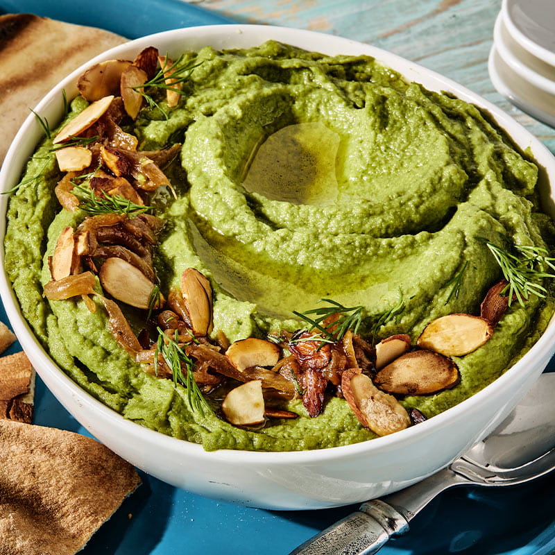 Rooted in Egyptian history, bessara is a refreshing, creamy dip – green from the color of fresh herbs and fava beans – layered with the flavours of fresh garlic, McCormick Gourmet™ Organic Ground Coriander and Club House® Ground Cumin, and then topped with flavourful garnish of crispy onions and toasted almonds.