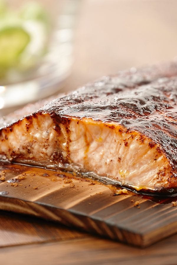Make a simple and flavourful rub for salmon using just brown sugar and chili powder. Grilling on a cedar plank will give the salmon a light, smoky flavour and make clean up a breeze.