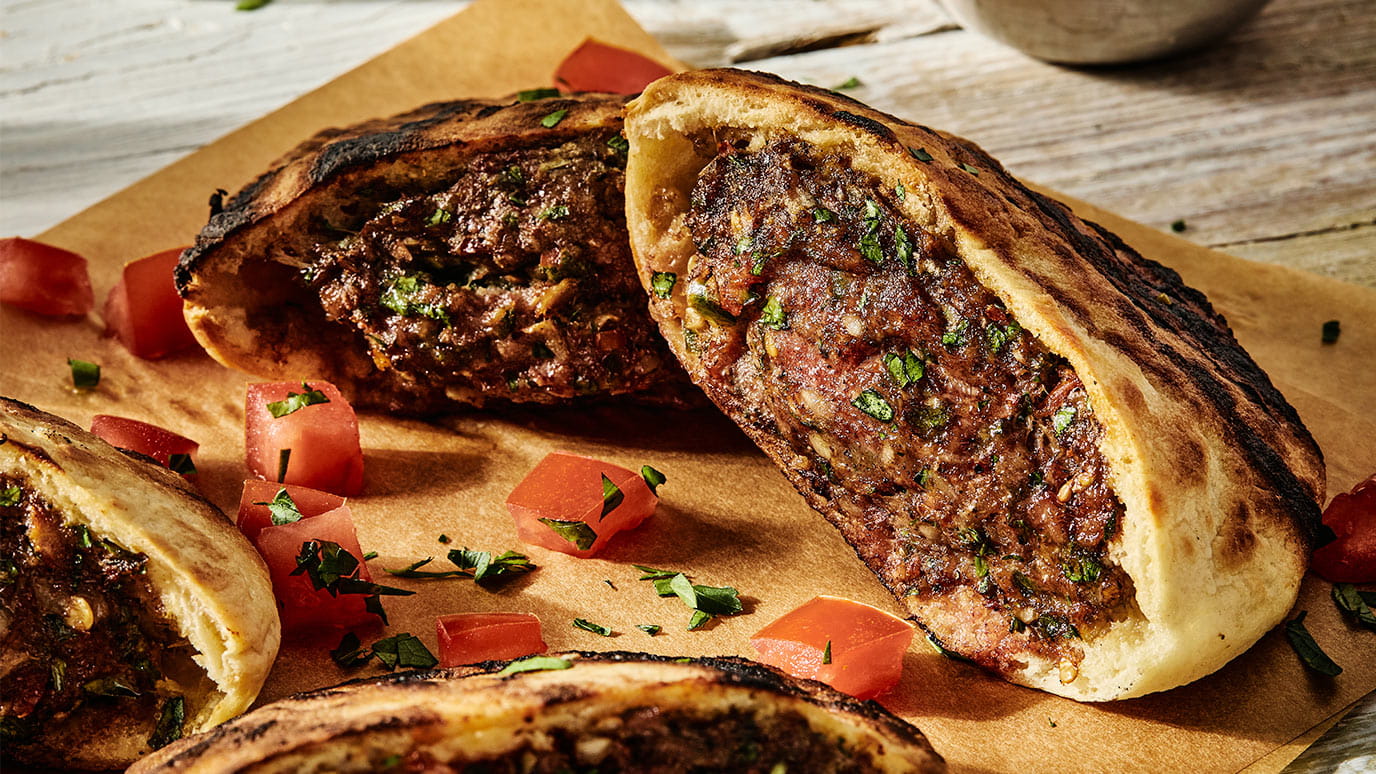 A different way to kebob: Stuff pita pockets with a tantalizing mixture of ground beef and spices, and grill until lightly charred. Bake until meat is cooked through, creating an instant hand-held delicacy that seamlessly brings the flavours of Egypt home.