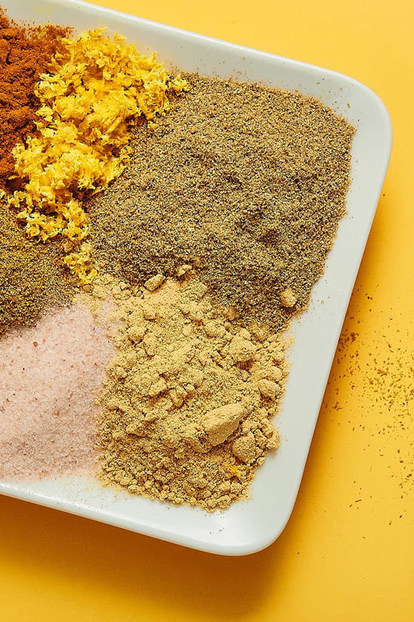 A warm and citrusy spice blend that encompasses each of the six tastes - sweet (coriander), sour (lemon), salty (sea salt), bitter (cumin), astringent (turmeric) and pungent (ginger). Incorporate it into sauces, dressings, marinades, and vegetable and grain dishes for bright, balanced flavour.