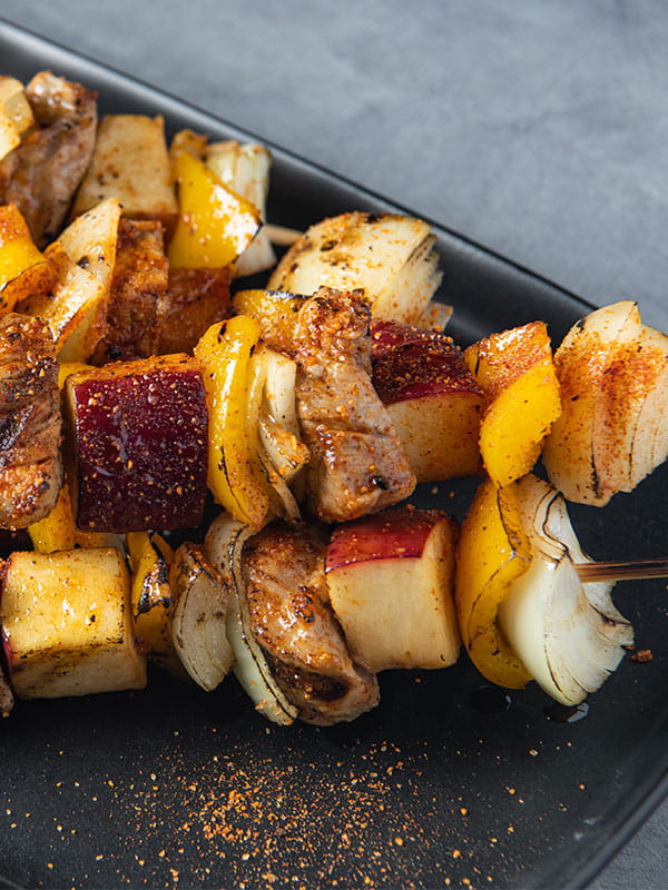 Les goûts fumé et sucré se rencontrent dans ces brochettes aux filets de porc et aux pommes. L’assaisonnement fumé au bois de pommier La Grille Club House apporte une appétissante touche à la grillade, et le miel Billy Bee compl...
