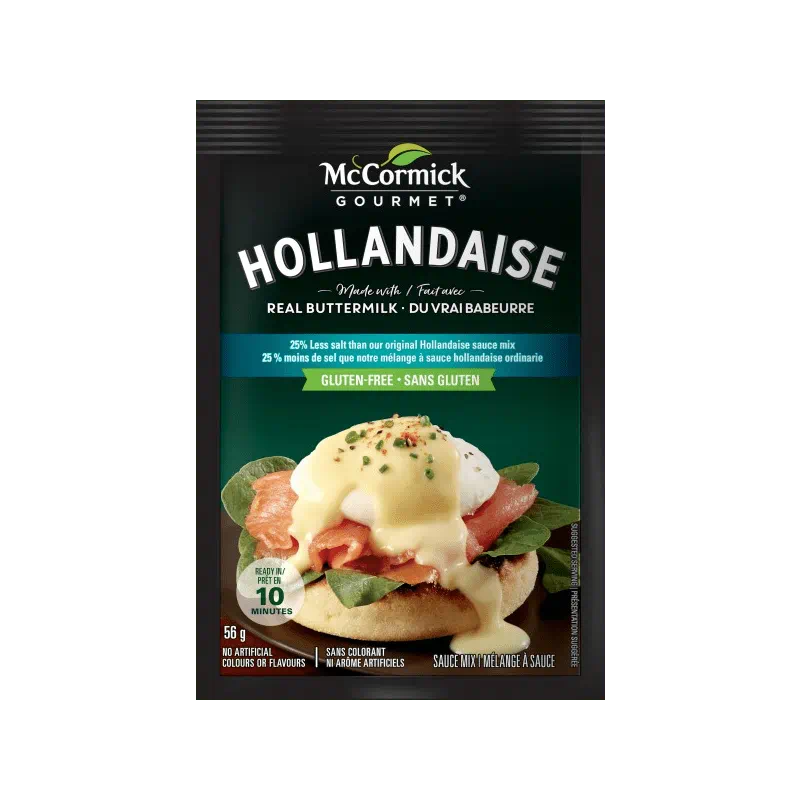 Cette sauce offre le même bon goût que le mélange à sauce hollandaise McCormick Gourmet. Elle est également certifiée sans gluten et contient 25 % moins de sel. Mélangée à... Cette sauce offre le même bon goût que le mélange à sauce hollandaise McCormick Gourmet. Elle est également certifiée sans gluten et contient 25 % moins de sel. Mélangée à la perfection avec des épices McCormick Gourmet de qualité, elle ne contient pas de colorant ni d’arôme artificiels. Suite Moins