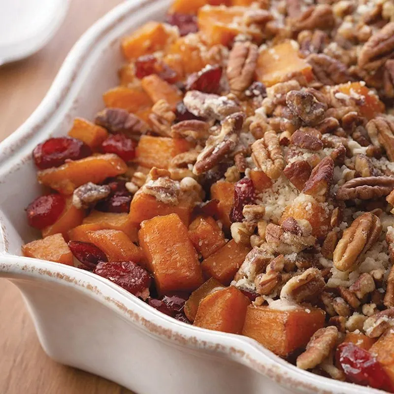Une garniture inspirée de la tarte aux pacanes pour apporter une touche festive aux patates douces classiques.