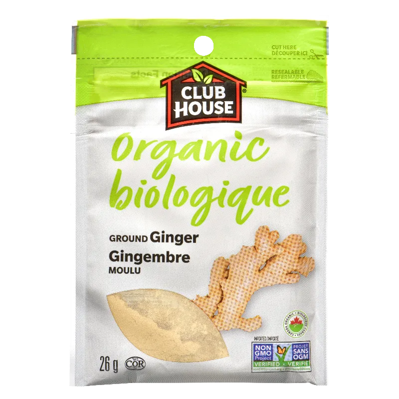 Club House Ground Organic Ginger complements curries, stir-fries, meat and poultry, vegetables, fish, fruit, biscuits, cakes, puddings, pickles and beverages.